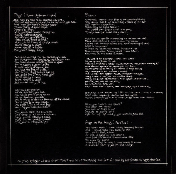 Recorded at Britannia Row Studios, London.© 1977 Pink Floyd Music Ltd.