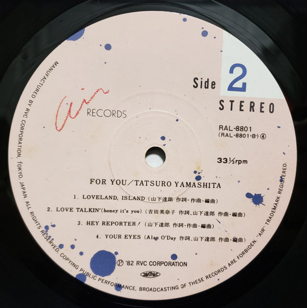 Tatsuro Yamashita - For You (LP, Album, Stereo) - Very Good Plus (VG+) / Very Good Plus (VG+)