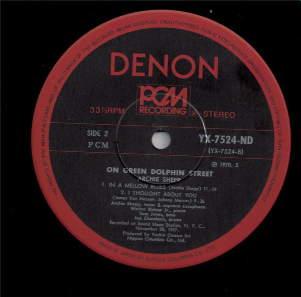 Archie Shepp - On Green Dolphin Street (LP, Album) - Near Mint (NM or M-) / Very Good Plus (VG+)