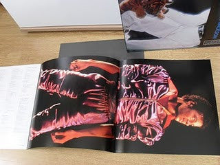WITH co-production credit for MJ on rear of sleeve (see here for version without the co-production credit: [r=12587140])Issued with obi in gatefold sleeve with 2 inserts: a glossy 10-page fold out booklet + single-page double-sided black and white Japanese information sheet. Last 4 pages of the 10-page booklet fold out into a double-sided poster of MJ (standing in purple tracksuit/reclining in white suit with tiger cub).