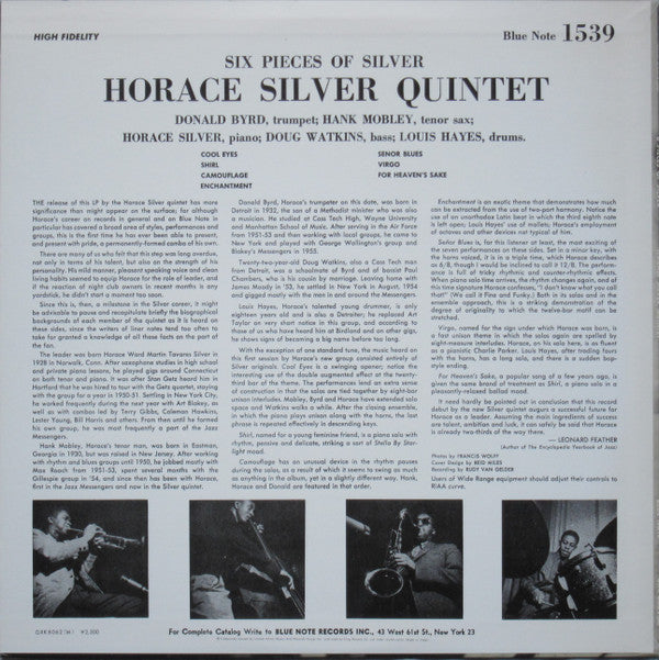 The Horace Silver Quintet - 6 Pieces Of Silver (LP, Album, Mono, Reissue) - Very Good Plus (VG+) / Very Good (VG)