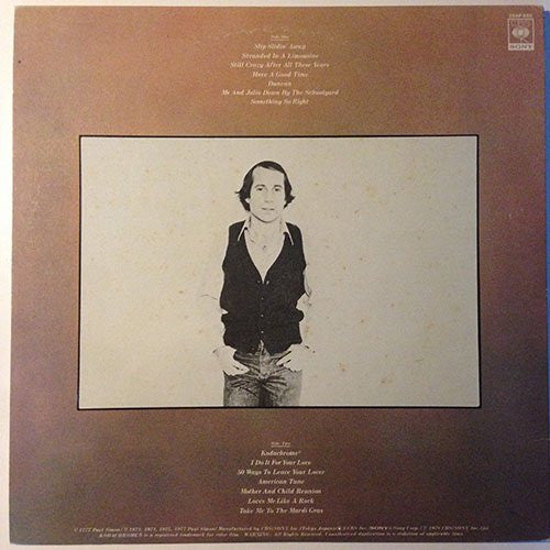 Japanese gatefold cover with obi & picture/lyric/liner note insert.Typo starts text at bottom of back cover: "©1777 Paul Simon / ℗ 1973, 1974, 1975, 1977 Paul Simon / Manufactured by CBS/SONY Inc. (Tokyo Japan)..."