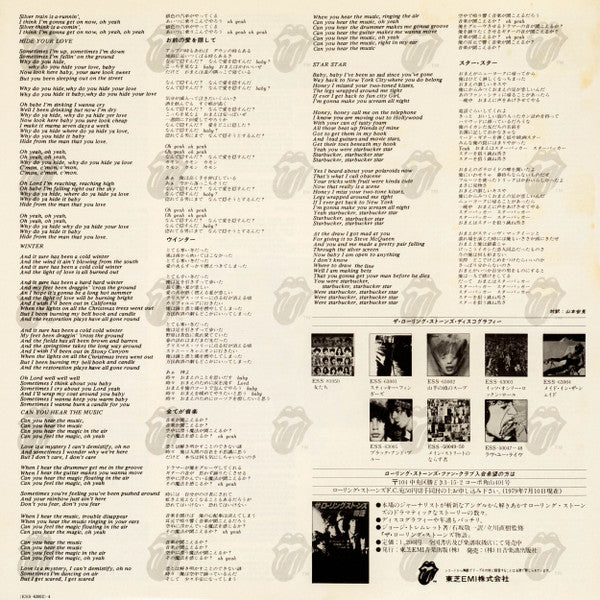 Comes in a gatefold sleeve with obi. Includes printed inner sleeve, card "goats head soup" print and a 4-page insert with liner notes in Japanese and lyrics in English and Japanese.Barcode and Other Identifiers
