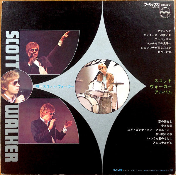 Japanese title of release on obi, back of sleeve and inside gatefold: スコット・ウォーカーアルバム = Scott Walker Album