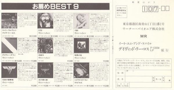 Includes obi, 4-page colour inner/lyrics sheet (japanese & english) & a B&W one-sided sheet (all in japanese).Published by Diamond Dave Music, Inc./SyVy Music, Inc. ASCAP except: