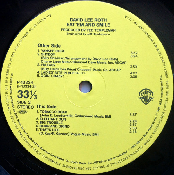 David Lee Roth - Eat 'Em And Smile = イート・エム・アンド・スマイル (Vinyl, LP, Album, Stereo) Very Good (VG) / Very Good Plus (VG+)