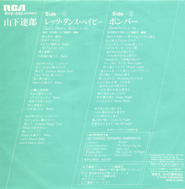 Tatsuro Yamashita - レッツ・ダンス・ベイビー = Let's Dance Baby / ボンバー = Bomber (7", 45 RPM, Stereo) - Very Good Plus (VG+) / Very Good Plus (VG+)