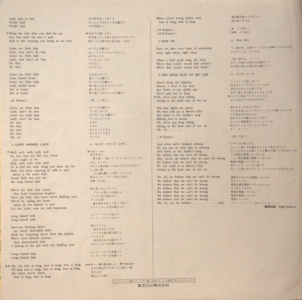 Gatefold sleeve with obi and insert.Apple logo on obi and bottom-right corner of front cover. Apple labels.