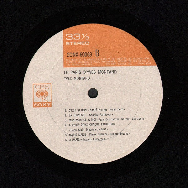 Yves Montand - Le Paris D'Yves Montand (Vinyl, LP, Compilation, Stereo) Very Good Plus (VG+) / Good Plus (G+)