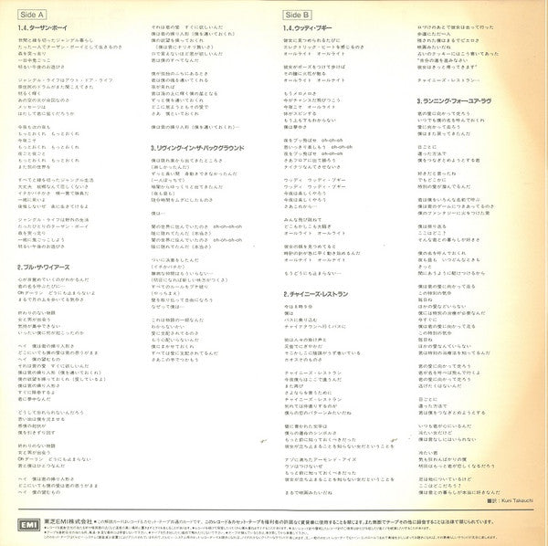 With Obi (wear, adhered to sleeve by tape) and Insert (fade, stain, taped/residue). Record has hairline and scuffs. Sleeve has wrinkle, stain, ringwear and taped to Obi.