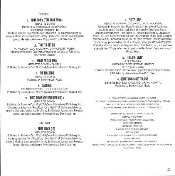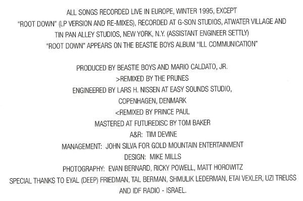 All songs recorded live in Europe, winter 1995, except "Root Down" (LP Version and remixes) recorded at G-Son Studios, Atwater Studios and Tin Pan Alley Studios, New York.A1 engineered at Easy Sounds Studio, Copenhagen, Denmark.