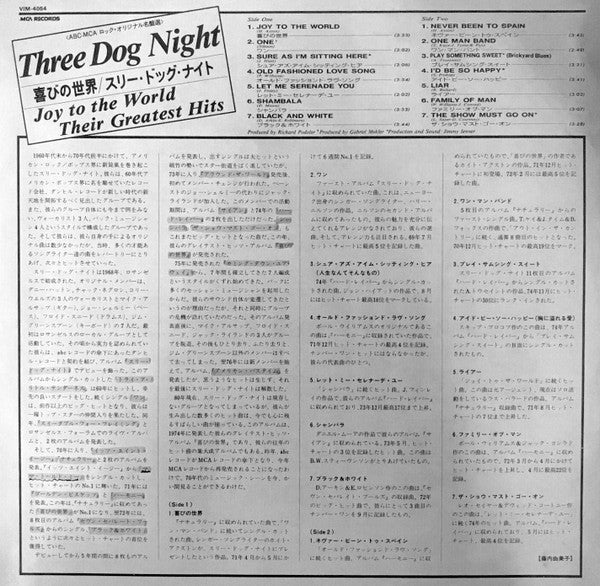 Three Dog Night - Joy To The World - Their Greatest Hits (Vinyl, LP, Compilation, Reissue) Near Mint (NM or M-) / Near Mint (NM or M-)