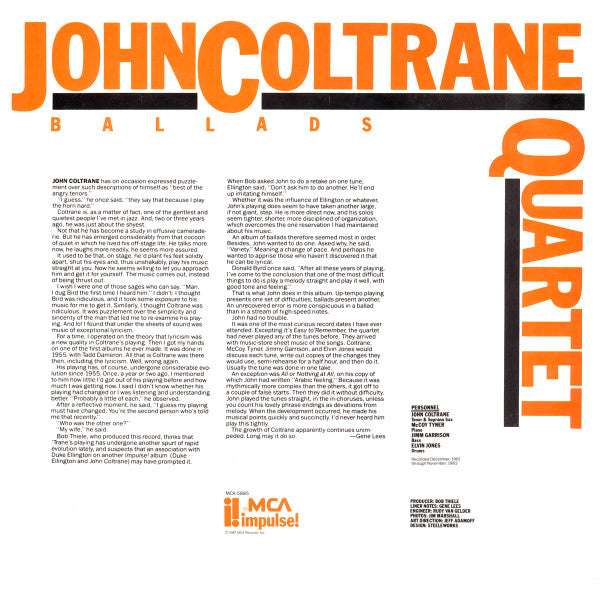 The John Coltrane Quartet - Ballads (Vinyl, LP, Album, Reissue, Remastered) Very Good (VG) / Good Plus (G+)