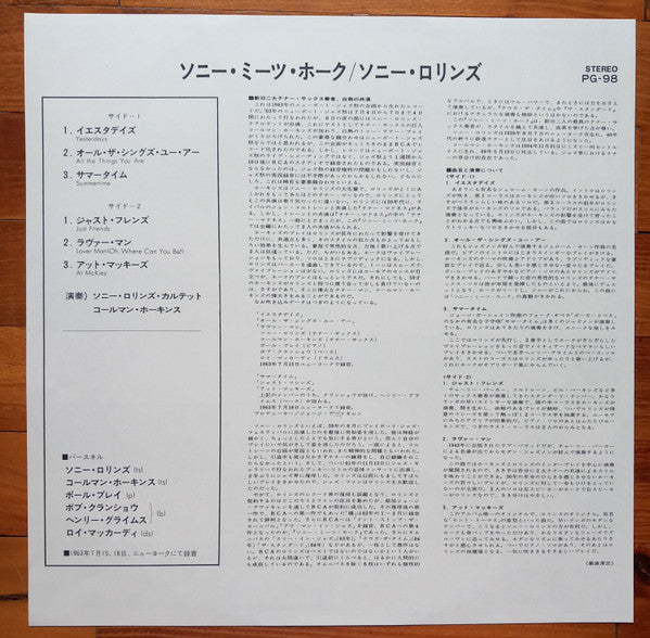 Sonny Rollins - Sonny Meets Hawk! (Vinyl, LP, Album, Limited Edition, Reissue, Stereo) Very Good Plus (VG+) / Good Plus (G+)