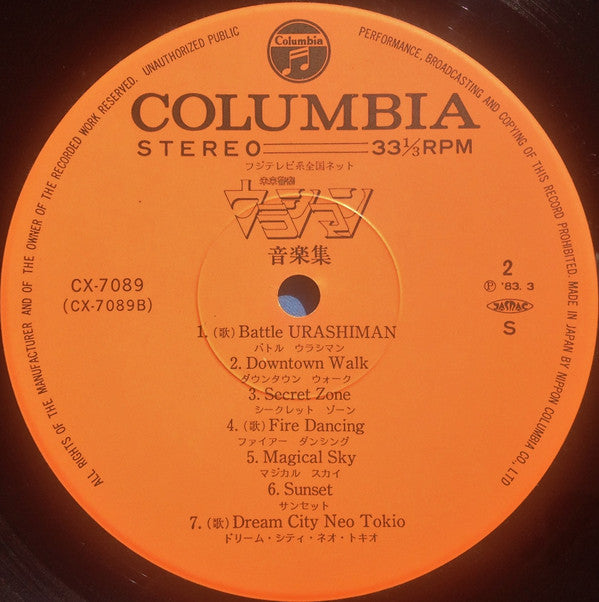 Soundtrack to the 1983 Mirai Keisatsu Urashiman anime television series.Released with obi and insert.