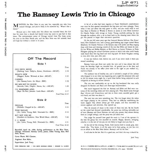 The Ramsey Lewis Trio - In Chicago (Vinyl, LP, Album, Stereo, Reissue) Very Good Plus (VG+) / Very Good (VG)
