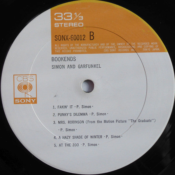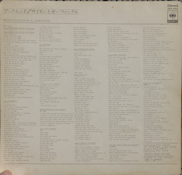 Different labels compared to https://www.discogs.com/Simon-Garfunkel-Bookends/release/7154953Inlay with songtexts