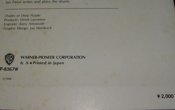 This is the 2nd Japan version of Shades of Deep Purple from September 1973Comes with an obi with hoju-hyou and an insert sheet with liner notes by Kensho Onuki along with the English lyrics.