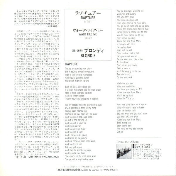 Blondie - Rapture = ラプチュアー (Vinyl, 7", 45 RPM, Single) Very Good Plus (VG+) / Very Good Plus (VG+)