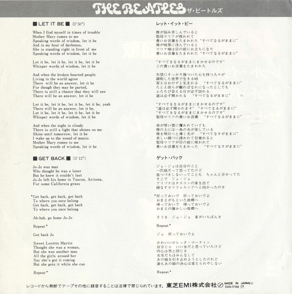 The Beatles - Let It Be / Get Back (Vinyl, 7", 45 RPM, Single) Very Good Plus (VG+) / Very Good Plus (VG+)