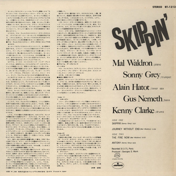Mal Waldron - Skippin' (Vinyl, LP, Album, Reissue) Very Good (VG) / Good Plus (G+)