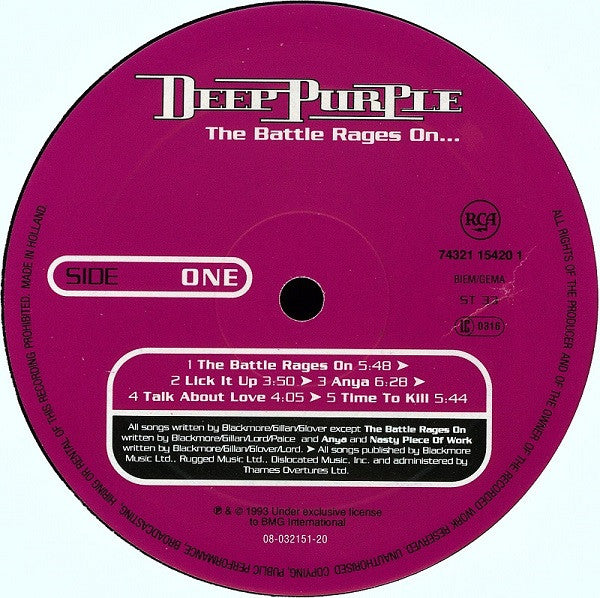 Deep Purple - The Battle Rages On... (Vinyl, LP, Album, Stereo) Very Good Plus (VG+) / Very Good Plus (VG+)
