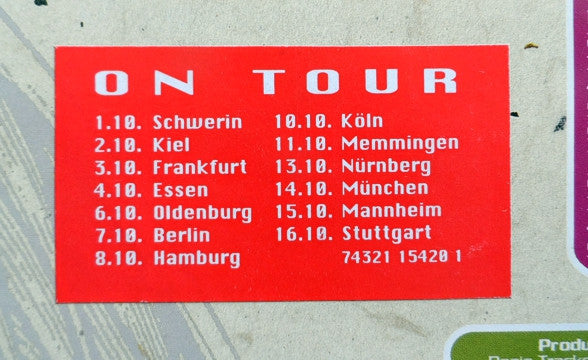 Some copies had on the back sleeve a sticker with Germany 1993 tour schedule and album catalog number.