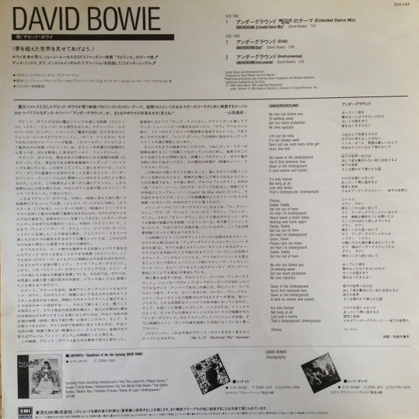 David Bowie - Underground (Extended Dance Mix) (Vinyl, 12", 45 RPM, Single) Very Good Plus (VG+) / Very Good Plus (VG+)