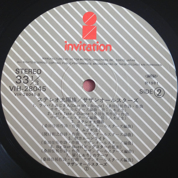 Southern All Stars - Stereo Taiyo-Zoku= ステレオ太陽族 (Vinyl, LP, Album) Very Good (VG) / Very Good (VG)