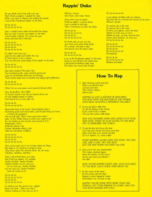 Included is a sheet with the lyrics to five of the songs and instructions on "How To Rap".Barcode and Other Identifiers
