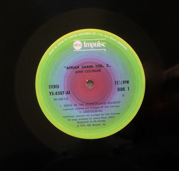 'Song Of The Underground Railroad' was the only take of the second selection recorded at the May 23 session. 'Greensleeves' was released in its original version impulse! AS-6 'Africa Brass'; the version heard here was a later take. The original master of 'Africa', heard on AS-6, was from the June 7 session; the version heard here is the precending take from the same date. 'Blues Minor', also heard on AS-6, is also from the June 7 session.