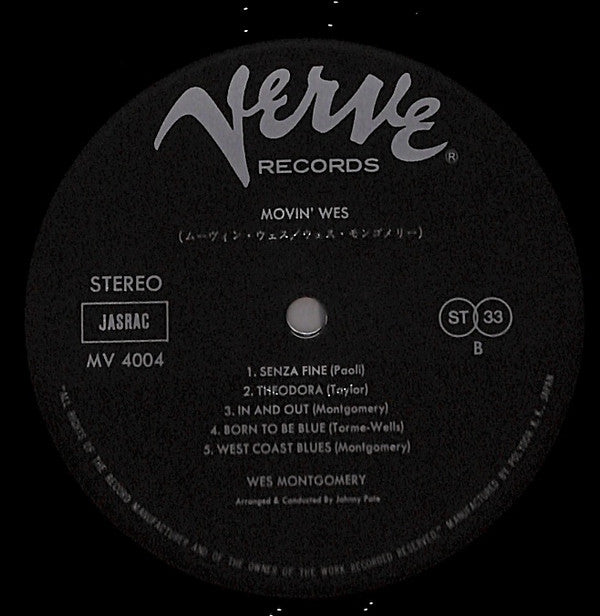 Wes Montgomery - Movin' Wes (Vinyl, LP, Album, Reissue, Stereo) Near Mint (NM or M-) / Very Good Plus (VG+)