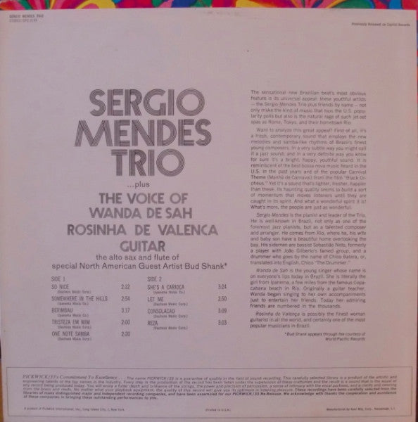 Shortened version of the Sergio Mendes Trio album "Brasil'65"Released due to the label history approximately 1968/69.