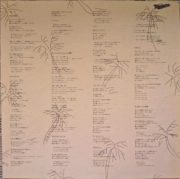 Comes with an insert with credits and song lyrics. Copies pressed from 1983 onward include a printed inner sleeve promoting the other singles and albums under the Niagara Records label.Early copies of "[r=21753490]" feature slightly different labels where Ohtaki is credited under his songwriting kanji name: "All music & arrangement by 大瀧詠一."
