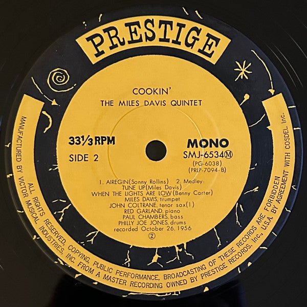 The Miles Davis Quintet - Cookin' With The Miles Davis Quintet (Vinyl, LP, Album, Reissue, Mono) Very Good (VG) / Very Good (VG)