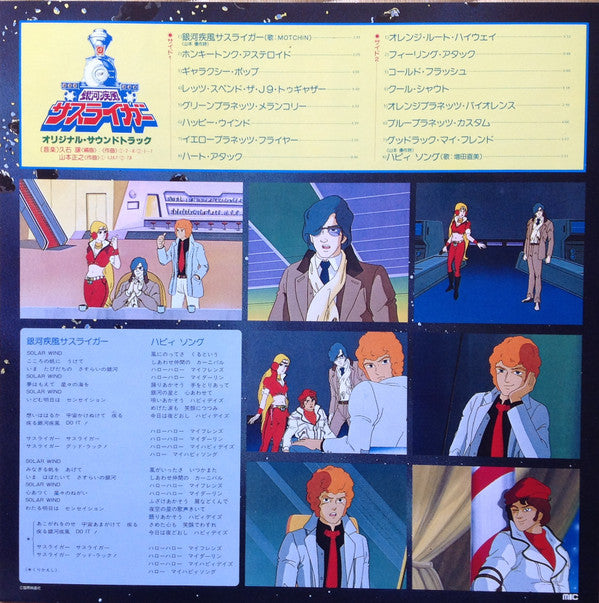 Soundtrack to the mecha anime series Galactic Whirlwind Sasuraiger (final installment in the J9 Series).Released with obi, insert and a B2 colour poster exclusive to the first run (初回特典 stated on obi).