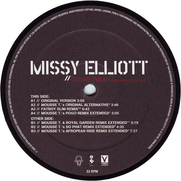 Missy Elliott - Gossip Folks (2xVinyl, 12", 33 ⅓ RPM) Very Good Plus (VG+) / Very Good Plus (VG+)