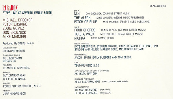 Steps (3) - Paradox - Live At Seventh Avenue South (Vinyl, LP, Album) Good Plus (G+) / Very Good Plus (VG+)