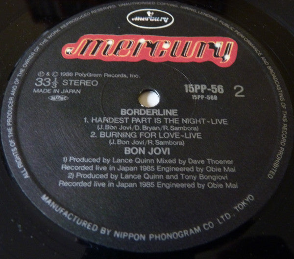 Bon Jovi - Borderline (Vinyl, 12", EP, 33 ⅓ RPM) Very Good Plus (VG+) / Very Good Plus (VG+)