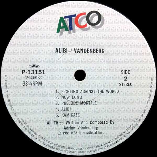 Vandenberg - Alibi (LP, Album) - Very Good Plus (VG+) / Very Good Plus (VG+)