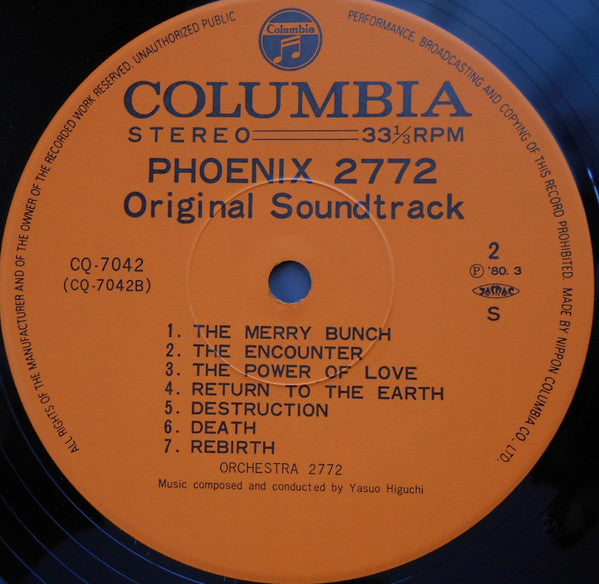 Yasuo Higuchi - Phoenix 2772 Original Soundtrack = 火の鳥2772 オリジナル・サウンドトラック (Vinyl, LP, Album) Very Good (VG) / Very Good Plus (VG+)
