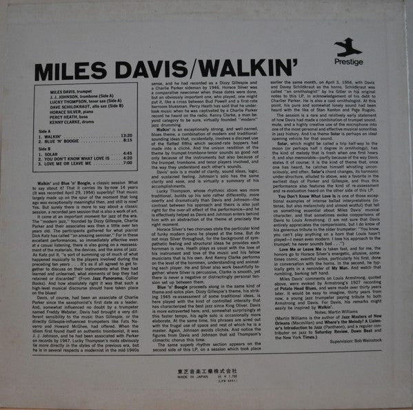Miles Davis All Stars - Walkin' (Vinyl, LP, Album, Compilation, Reissue, Mono) Very Good (VG) / Very Good (VG)