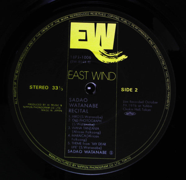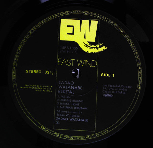Sadao Watanabe - Recital (Vinyl, LP, Album, Limited Edition, Reissue, Stereo) Very Good Plus (VG+) / Good Plus (G+)