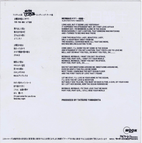 Tatsuro Yamashita - 土曜日の恋人 / Mermaid (7", 45 RPM, Single) - Near Mint (NM or M-) / Very Good Plus (VG+)