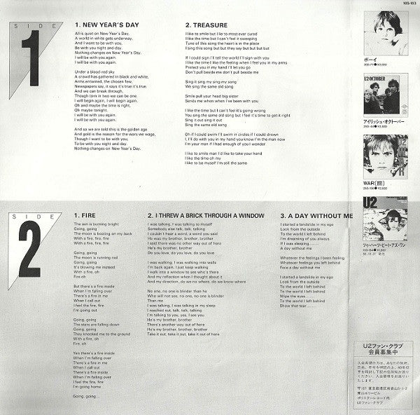 A1 taken from the forthcoming album War ILPS 9733.B1 to B3 recorded live in Werchter, Belgium, July 1982 by I.D. TV & Film, taken from soundtrack to TV Special "U2".
