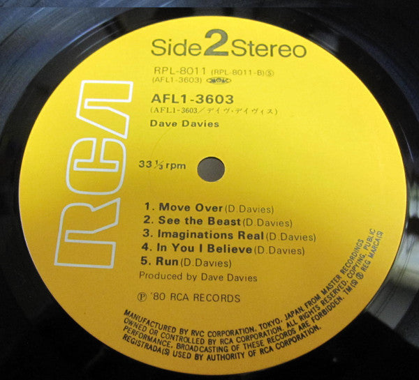 Dave Davies - AFL1-3603 (Vinyl, LP, Album) Very Good Plus (VG+) / Very Good (VG)