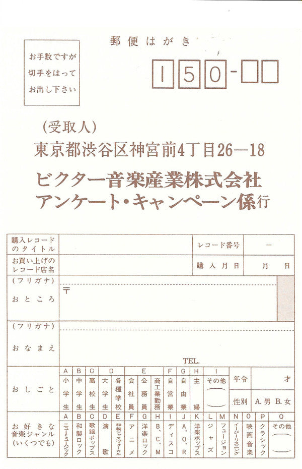 No obi. With 4-page insert and label feedback reply card. Record has scuff. Sleeve has wear.