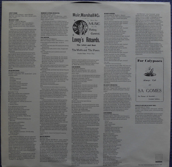 All selections recorded in New York, except A2, A3: recorded in Trinidad:A1: 1912