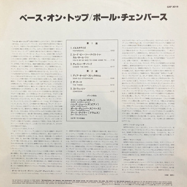 Paul Chambers Quartet - Bass On Top (Vinyl, LP, Album, Reissue, Stereo) Very Good Plus (VG+) / Very Good (VG)