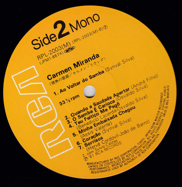 Carmen Miranda - Carmen Miranda (Vinyl, LP, Mono) Near Mint (NM or M-) / Very Good Plus (VG+)